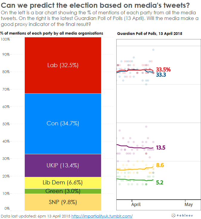 I’m not making claims of statistical significance here, but by collecting data from left- and right- leaning organisations we appear to have a big picture that relates to voters’ intentions.