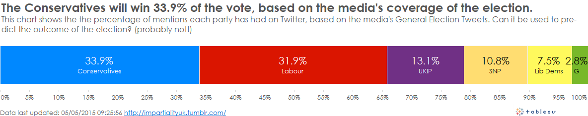 When we look at all our media coverage (left- and right-leaning press, impartial broadcasters and upstart websites) what do we see as the proportional mention of each party?